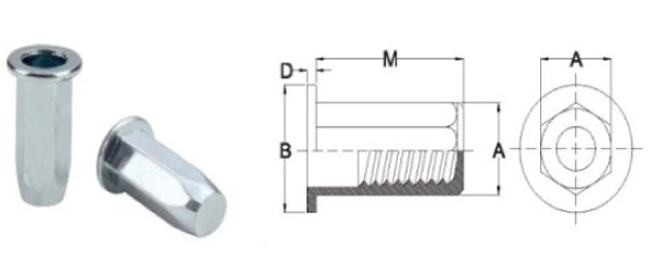 - M10 Hex Flat Head Open Insert Nuts / M10 Hex Flat Head Closed Insert Nuts