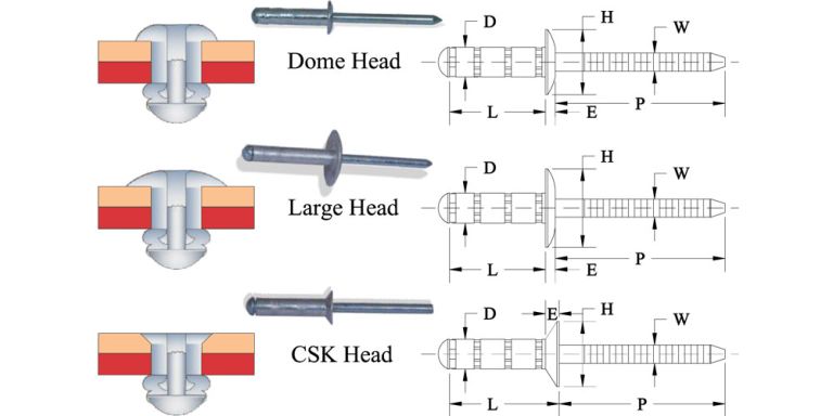 L Fasteners Pvt. Ltd. manufacture multi-grip rivet in all sizes and styles. Blind Rivets are made as per IFI-114, DIN, and ASME standards. Different head styles are available as dome head multi-grip blind rivets, CSK head multi-grip Blind Rivets, and Large Flange multi-grip Blind Rivets. These blind rivets are made in 3 material grades,