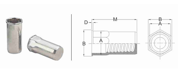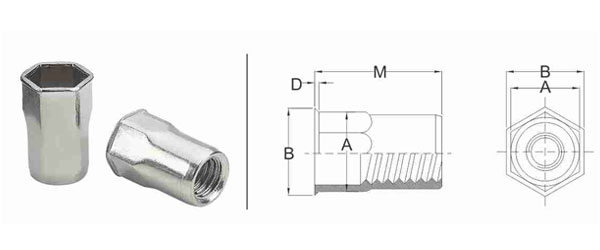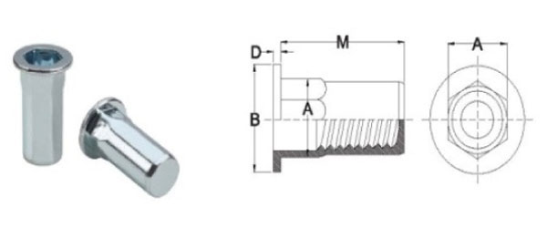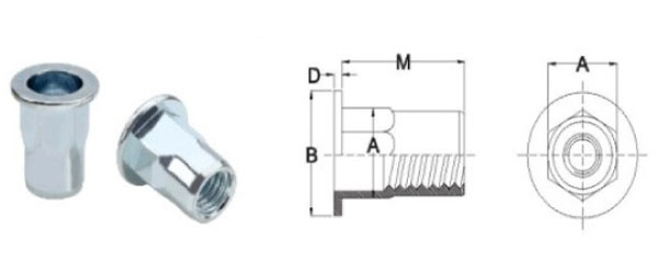 - M6 Semi Hex Flat Head Open Insert Nuts / M6 Semi Hex Reduced Head Closed Insert Nuts